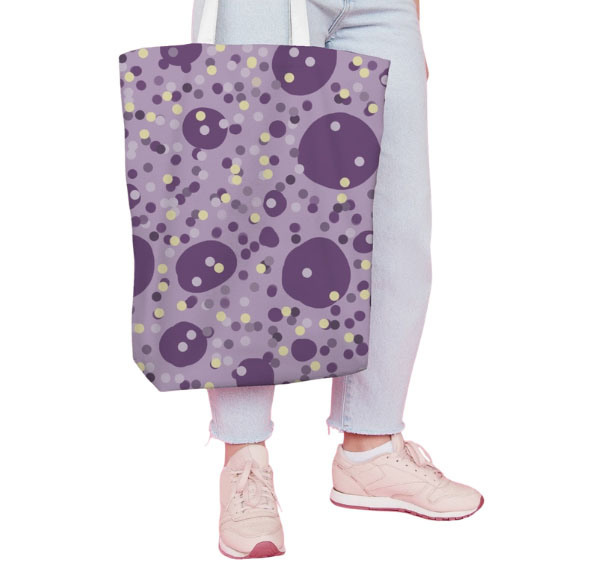 Diseño de circulos grande morado medio pequeños lila y amarillo claro, fondo lila. (Categoría COL)