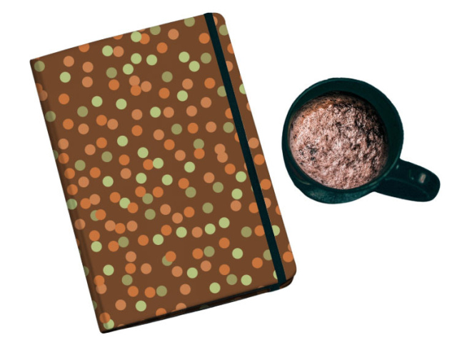 Diseño de circulos pequeños cafe, naranjo y verde agua fondo cafe oscuro. (Categoría COL)