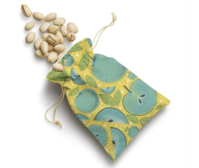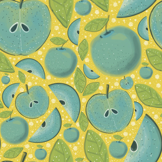 Diseño de manzanas turqyeza con fondo amarillo y blanco. (Categoría Frutas - FRU)