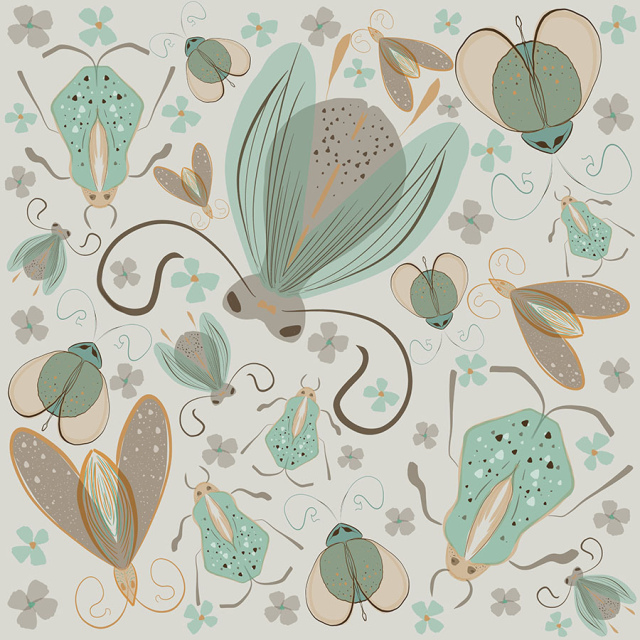 Diseño de polillas verde y cafe sobre fondo blanco. (Categoría INS)