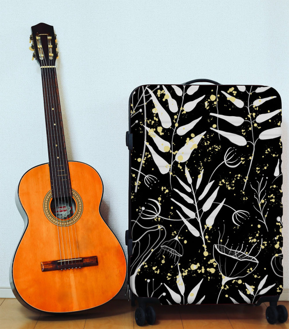 Diseño de flores y hojas blancas puntos amarillos fondo negro. (Categoría Naturaleza - NAT)