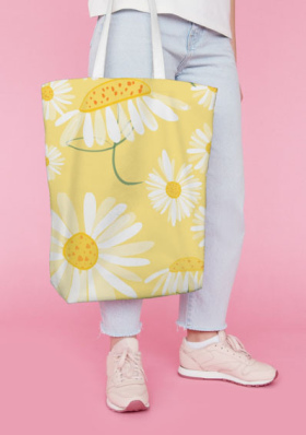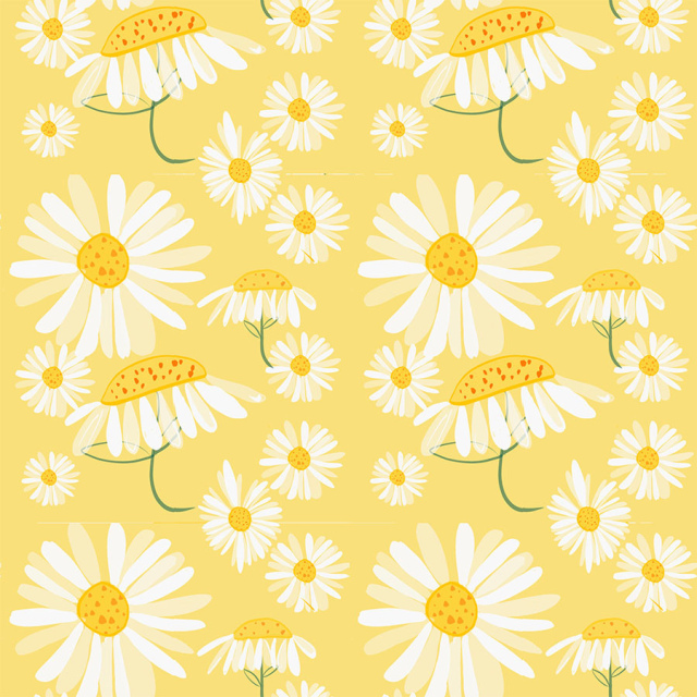 Diseño de maragritas blancas con tallo verde en fondo amarillo claro. (Categoría Naturaleza - NAT)