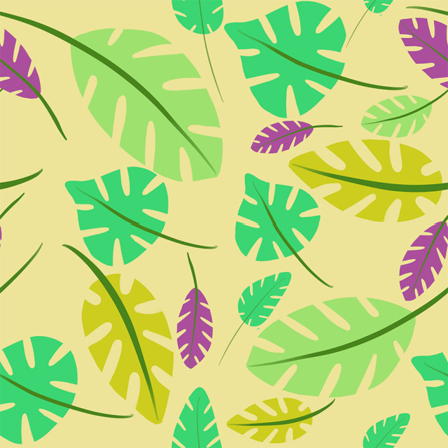 Diseño de hojas caladas verdes con morado en fondo amarillo. (Categoría Naturaleza - NAT)