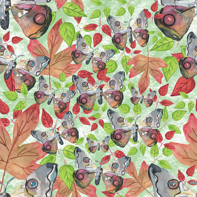 Diseño de mariposas de acaurela con hojas rojas. (Categoría Naturaleza - NAT)
