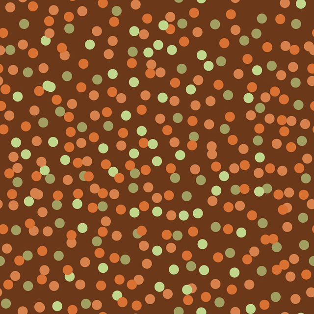 Diseño de circulos pequeños cafe, naranjo y verde agua fondo cafe oscuro. (Categoría COL)