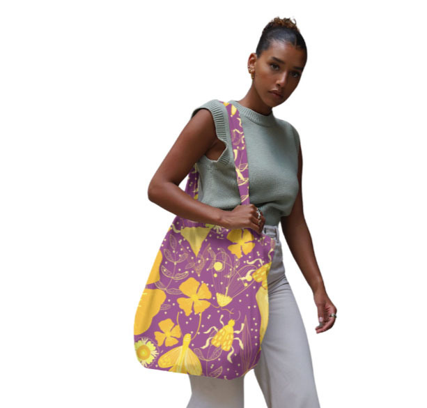 Diseño de escarabajos amarillos y fkores anarillo intenso fondo fuxia oscuro intenso. (Categoría INS)